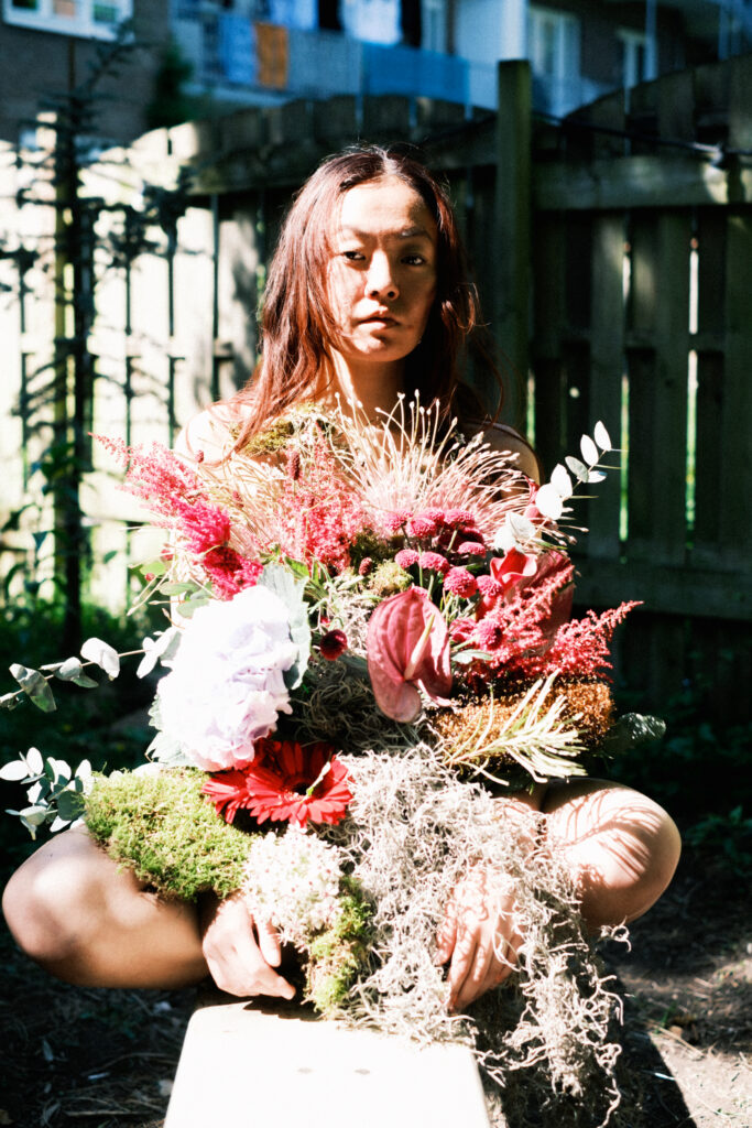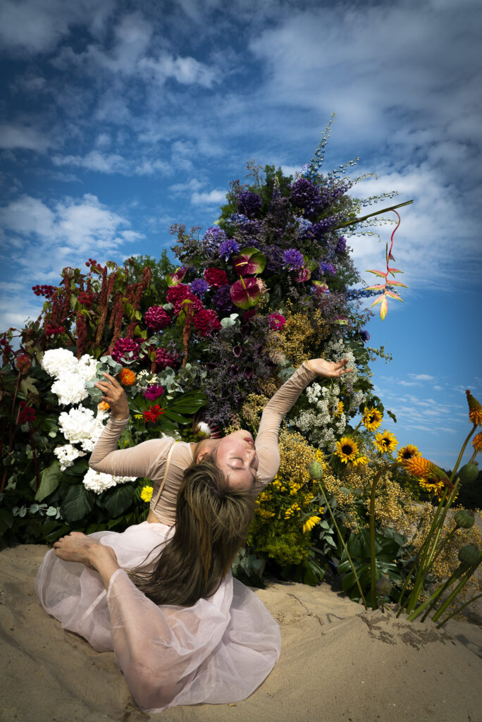 In this piece, a giant flower sculpture represents the heart itself.